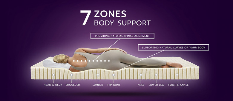 Each zone conforms individually to the different parts of your body. The shoulder zone is slightly softer as our shoulders stick out more, while the middle zone is slightly firmer as our lumbar area, where the heaviest part of our body rests, needs more support to keep our spine in its natural position during the night.