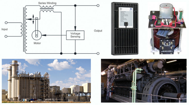 Motor driven variacs are operated to maintain output voltage regulation as shown in figure. This scheme can handle heavy surge currents frequently used in industrial setting due to high surge capability.