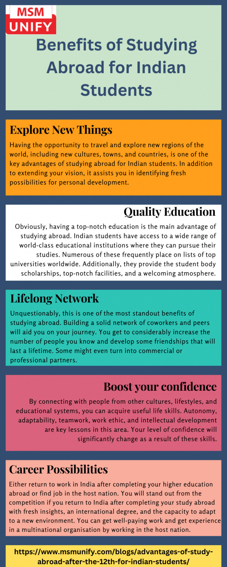 The younger generation in India has made it popular to pursue an education overseas. Because studying abroad has advantages in terms of education, social interaction, and career opportunities, more and more students are making this decision. Higher education abroad offers students the possibility to advance both personally and professionally. There are many benefits of studying abroad for Indian students. Learn more about it from Msmunify.