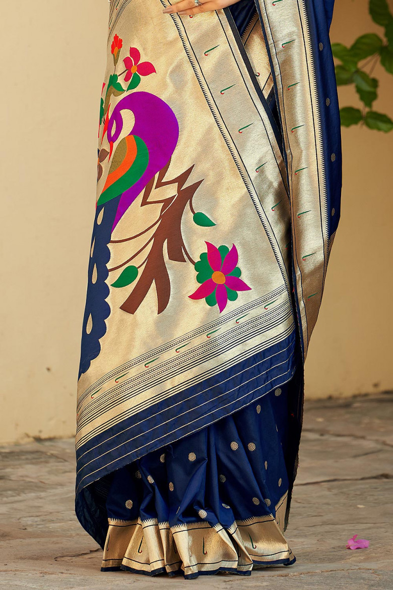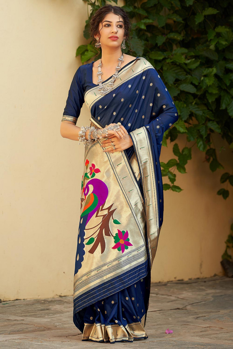 Designer Navy Blue Banarasi Silk Saree