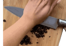 - Put the blade of the knife down on the coffee beans in a flat position.