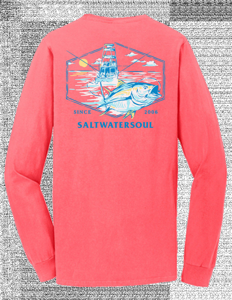 I have built SALTWATERSOUL one customer at a time since the day I drew the first logo. We have kept SALTWATERSOUL homegrown and to the core. Years ago I didn't know anything about clothes or how to sell a shirt. All I knew is that I had a real name that meant something powerful that would hit every person in the Soul. A meaningful Brand, not some pic of a fish, get a quick buck name that would be gone in 2 years. I knew this road would be long and grueling. I have seen so many knock offs of us. They all try to ride my wave. When you hit the Saltwater and you get all goosed up or smell the salt air you know what I'm talking about. If you are hardcore like me and my partner of SALTWATERSOUL, TOM VAUGHN, about the Ocean or Skinny water then you have a SALTWATERSOUL! Period.