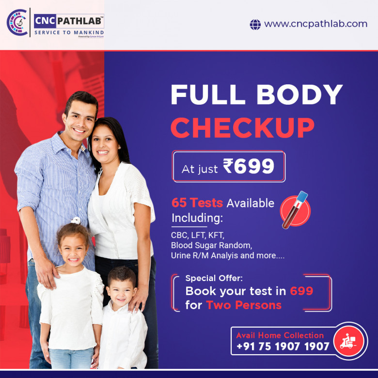 The Full Body Checkup in Jaipur is a general health checkup that diagnoses problems with most of the body’s core systems. The heart system, liver system, kidney system, blood glucose, lipid profile, cholesterol test, and other areas of the body are all included in a full body test. The goal of a full body test is to validate any current health issues and to identify any potential health issues that have yet to be discovered. Early detection can help you avoid illnesses, and with the Truworth Full Body Checkup, you can keep the best track of your health. To book a full body health checkup in Jaipur, kindly contact "CNC Pathlab," a pathlab that is associated with integrity, affordability, and quality.